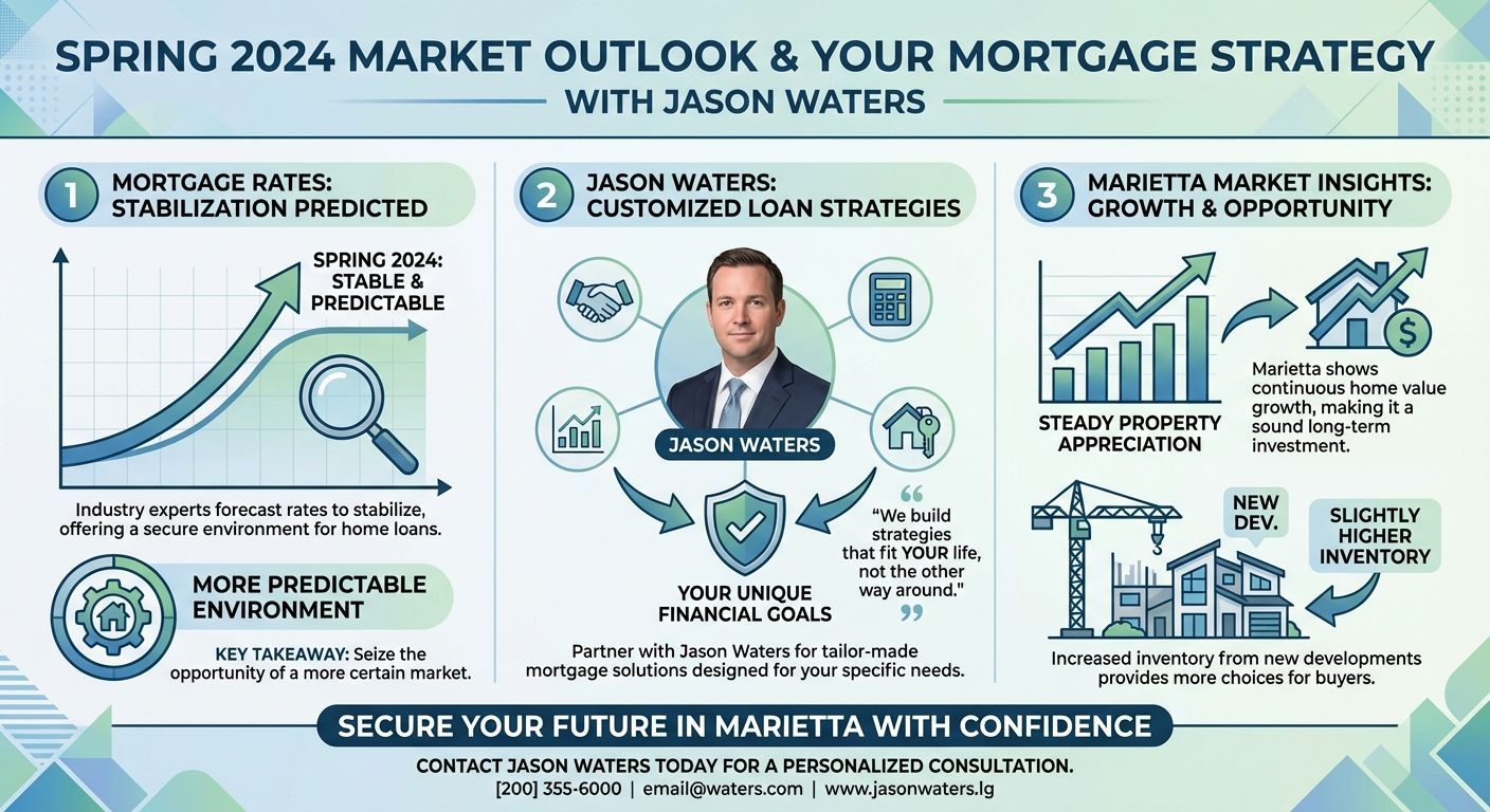 One of the biggest questions on every buyer's mind is where mortgage rates are heading. Industry experts predict that rates will stabilize this spring, providing a more predictable environment for securing a home loan. When you work with Jason Waters, you gain access to customized loan strategies designed to fit your unique financial goals.